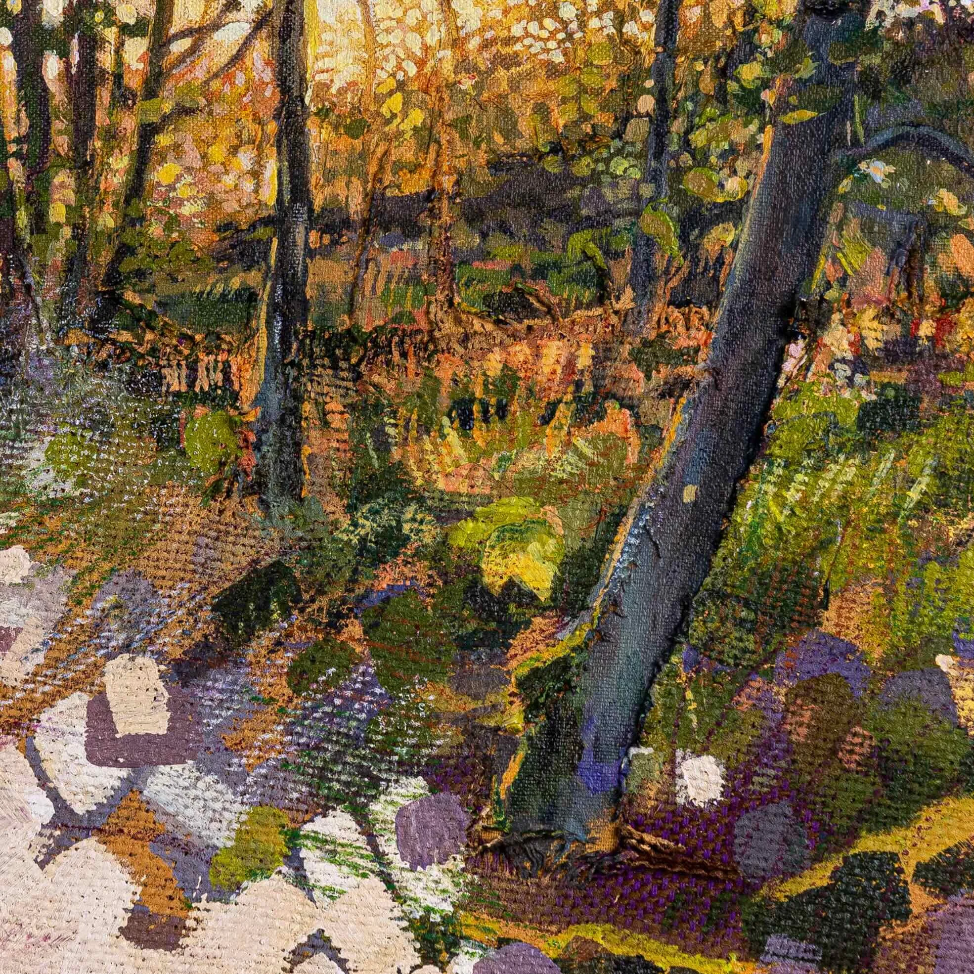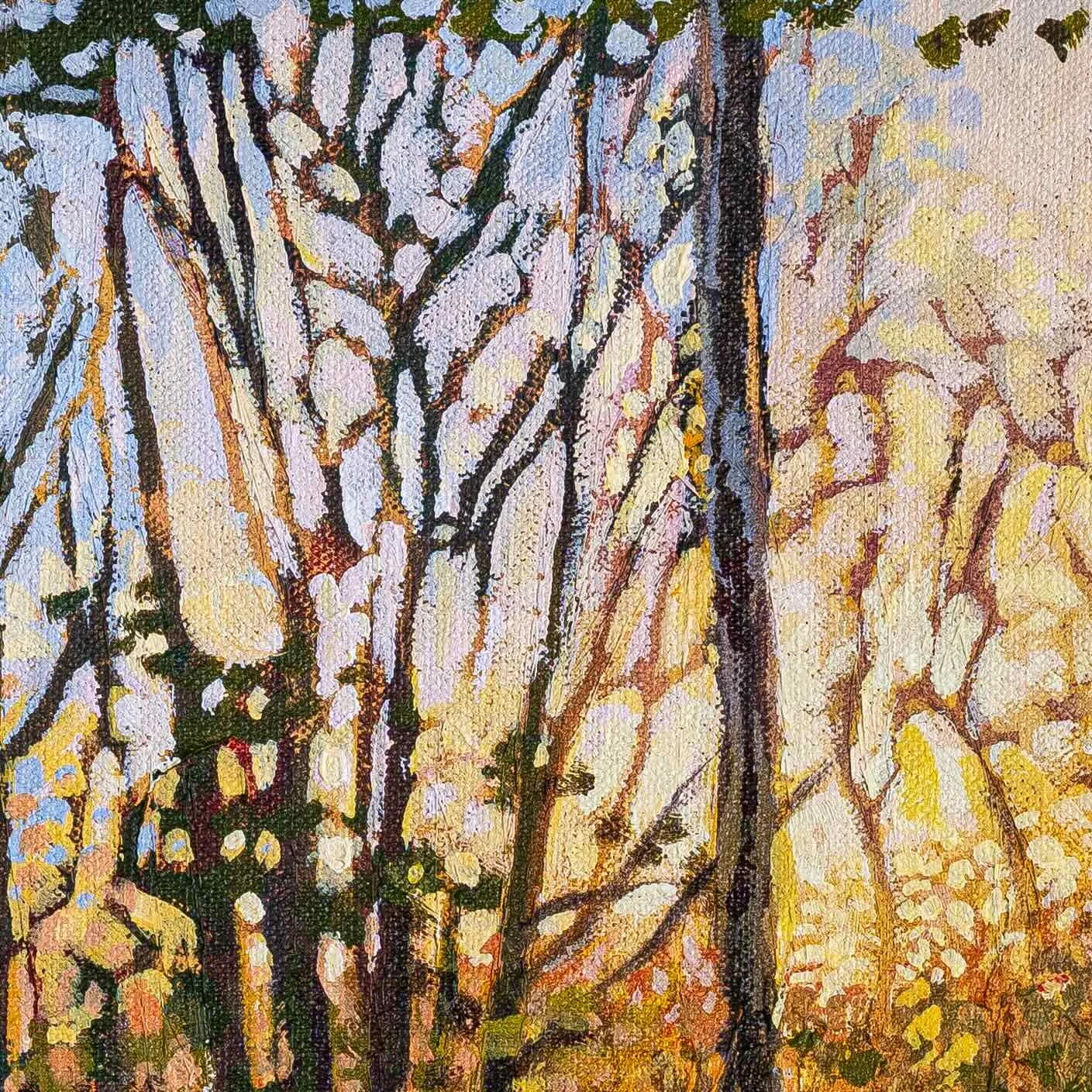 This sketch captures the golden moment when the light finally reaches over the hill, spreading toward you as you stand quietly in the shadows of the trees—illuminating the world as you watch.