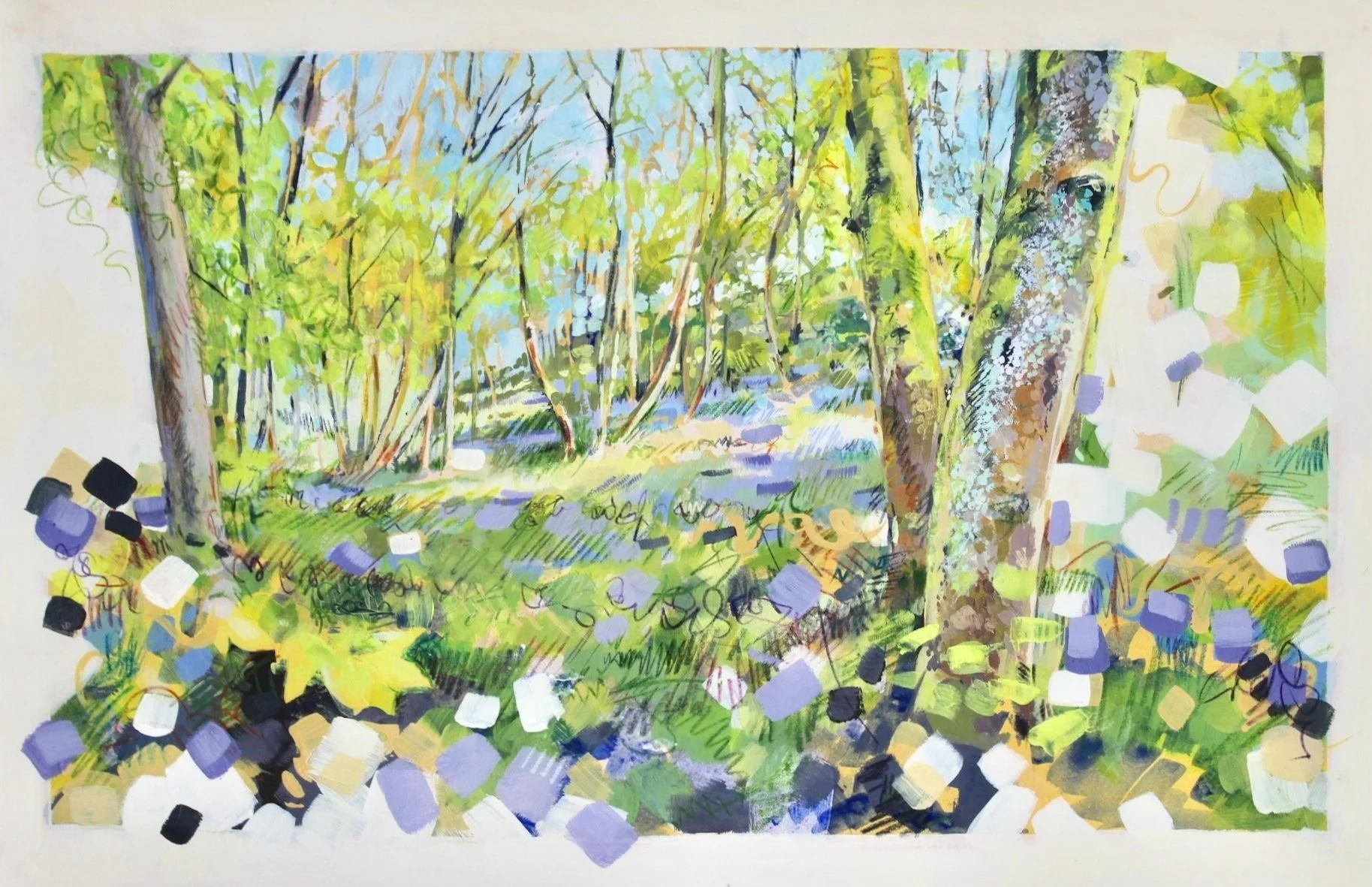 There is a shockingly vivid quality to the very start of bluebell season. The mercurial blue of the flowers often punctuates swathes of luminous greens and yellows—an explosion of delicate new leaves, moss, lichen, and sunlight. Together, these tones stir your sense of wonder and often feel impossible for me to capture in a photograph, but a joy to paint.